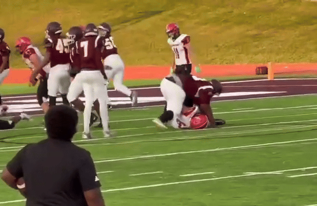 Một nam sinh trung học ở Michigan (Mỹ) bị gãy cột sống trong trận bóng bầu dục khi đối thủ có vóc dáng gấp đôi lao thẳng người đè lên, theo đoạn video lan truyền trên mạng.
