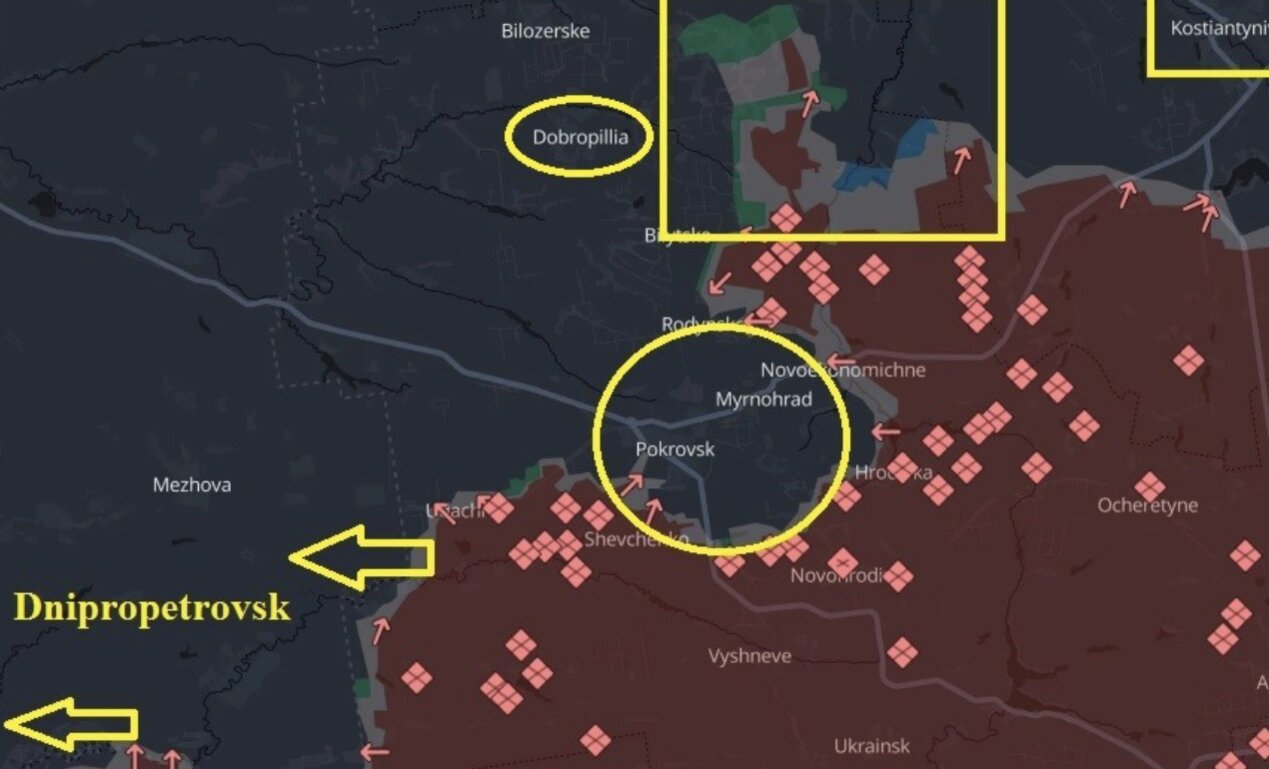 Việc thu hút một lực lượng chủ lực lớn của Ukraine lên phía bắc Pokrovsk đã tạo điều kiện thuận lợi các đơn vị Nga đánh sang phía tây Pokrovsk, tiến vào khu vực Dnipropetrovsk, đe dọa phá hủy hoàn toàn hệ thống liên lạc hậu cần cho lực lượng Ukraine đang đồn trú ở vùng Donetsk.