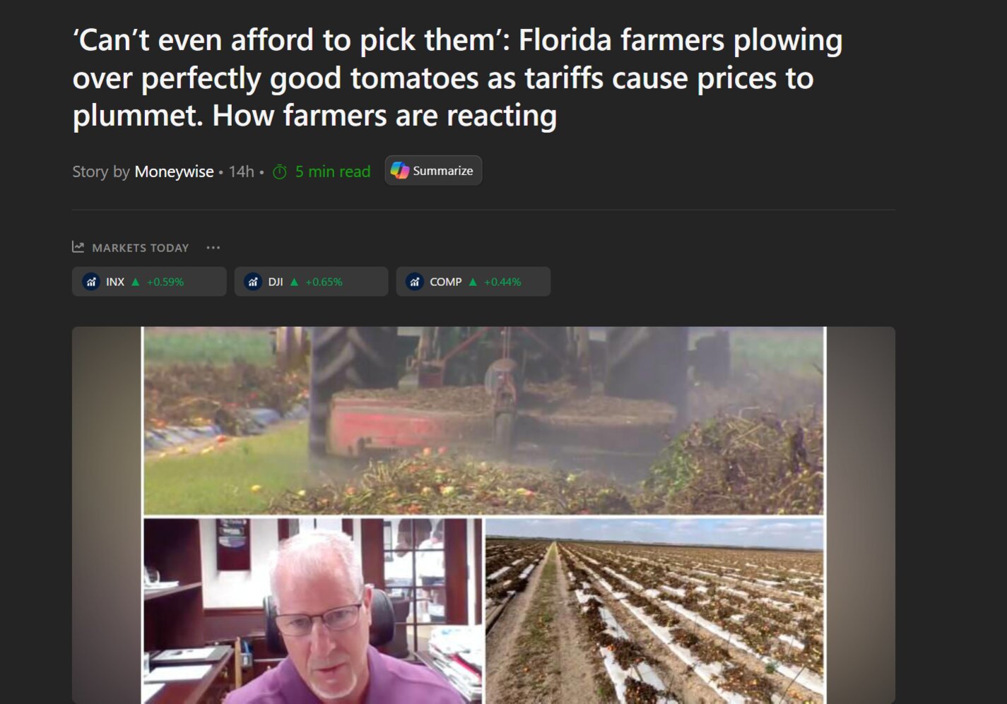 Old  Default Nông dân Florida cày nát cà chua tươi ngon do thuế quan khiến giá giảm mạnh
