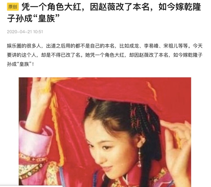 Old  Default Nữ diễn viên phải đổi tên để "né" Triệu Vy, lấy chồng thuộc hậu duệ Càn Long là ai?
