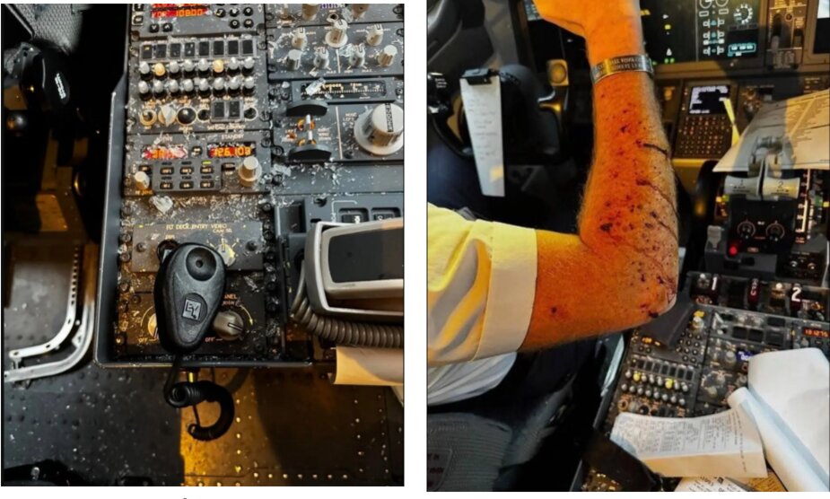 Máy bay bị vỡ kính chắn gió sau khi va chạm với vật thể bí ẩn. Ảnh: X