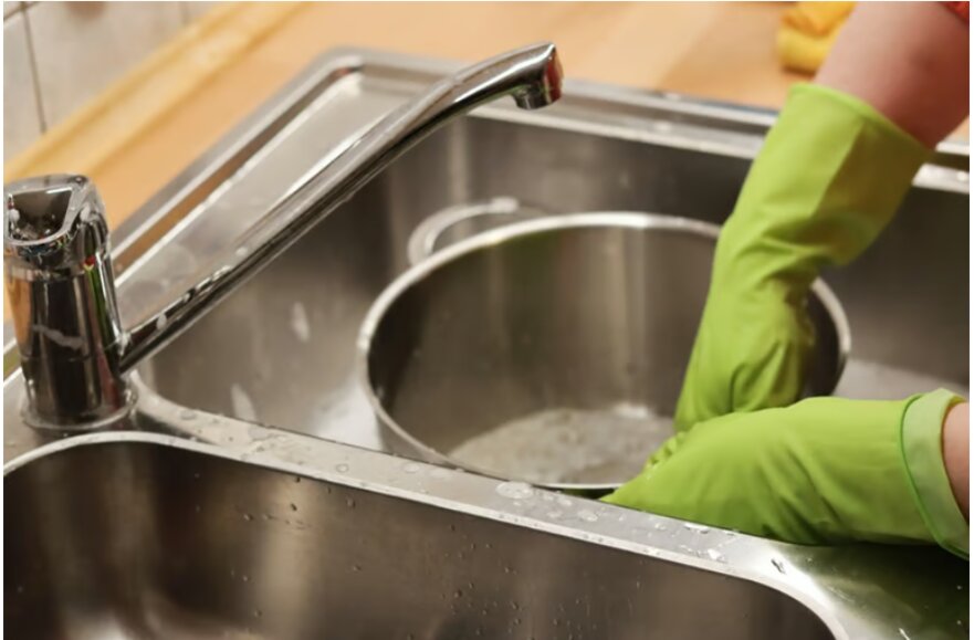 Đây là thói quen sai nghiêm trọng nhất nhưng lại rất phổ biến. Khi vừa tắt bếp mà lập tức xả nước lạnh vào chảo nóng , nước gặp dầu nóng sẽ bốc hơi tức thì , tạo ra làn khói dầu dày đặc chứa các phân tử dầu bị khí hóa .