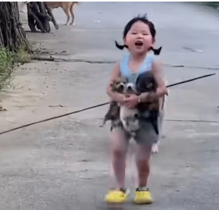 Hình ảnh trong clip bé Yang bế 3 chú cún con không chỉ nổi tiếng tại Trung Quốc mà cũng được lan tỏa rộng rãi trên mạng xã hội Việt Nam.