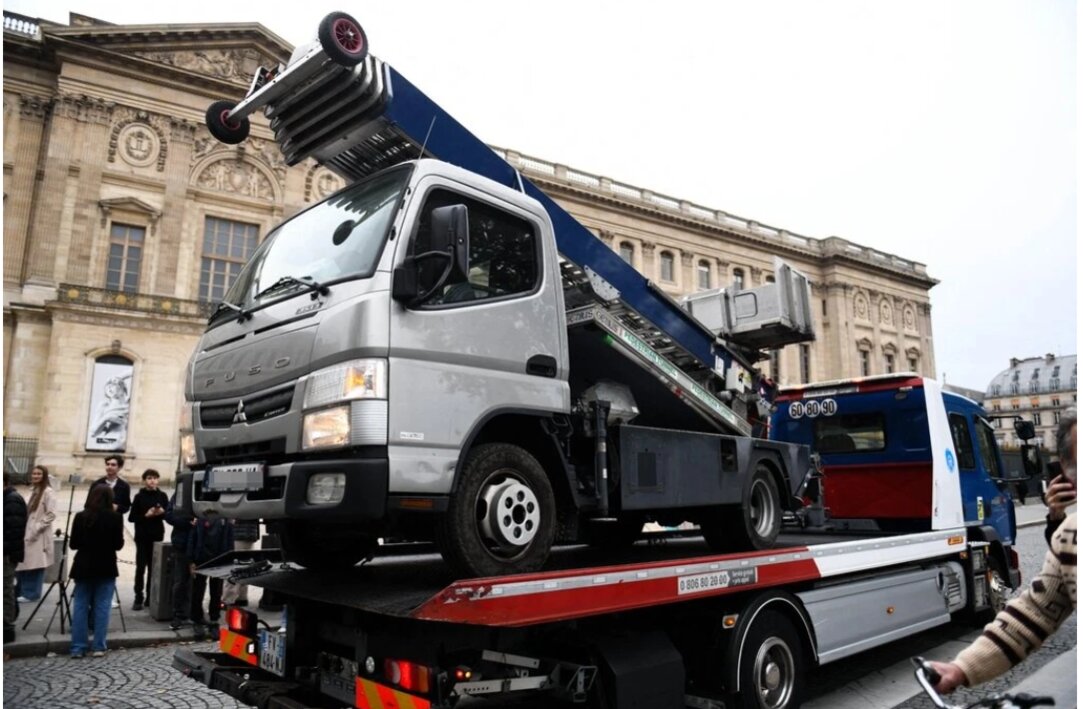 Những tên trộm đã sử dụng thang điện gắn trên xe tải để vào khu vực Galerie d’Apollon đánh cắp đồ trang sức. Ảnh: Abaca Press.