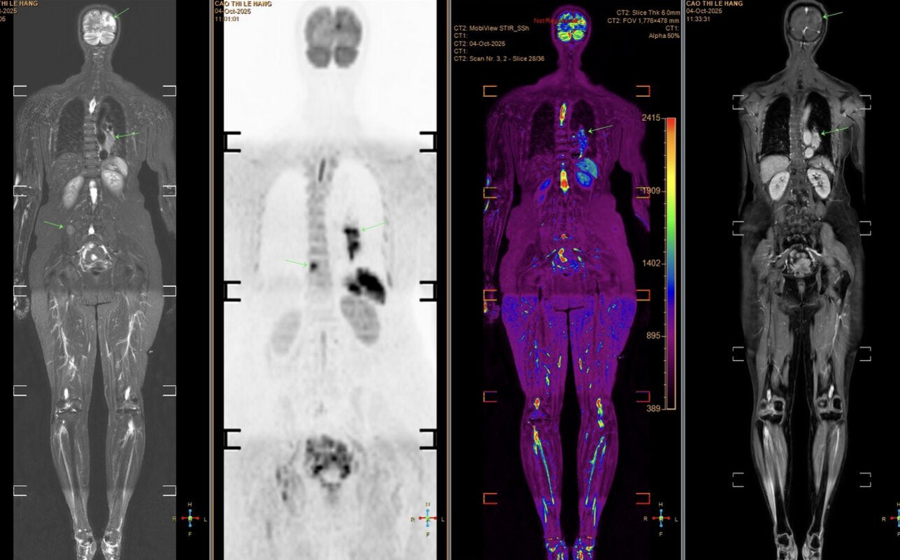 Tuy nhiên, các triệu chứng ngày càng nhiều và nặng hơn, bệnh nhân mới chịu đi khám sức khỏe. Kết quả chụp MRI cho thấy nhiều ổ tổn thương di căn dạng biểu mô tuyến. Khi chụp CT ngực, bác sĩ phát hiện một khối u lớn ở đáy phổi trái, xác định là ung thư phổi giai đoạn muộn, đã di căn sang nhiều cơ quan, trong đó có não bộ. Tiên lượng bệnh rất xấu.