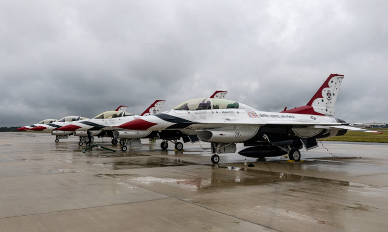 Dàn tiêm kích F-16 của đội nhào lộn Thunderbirds tại căn cứ liên hợp Andrews hồi tháng 9. Ảnh: AFP