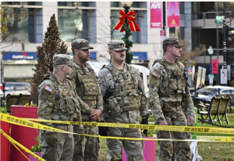 Vệ binh Quốc gia phong tỏa hiện trường sau vụ nổ súng gần Nhà Trắng ngày 26/11. Ảnh: Reuters