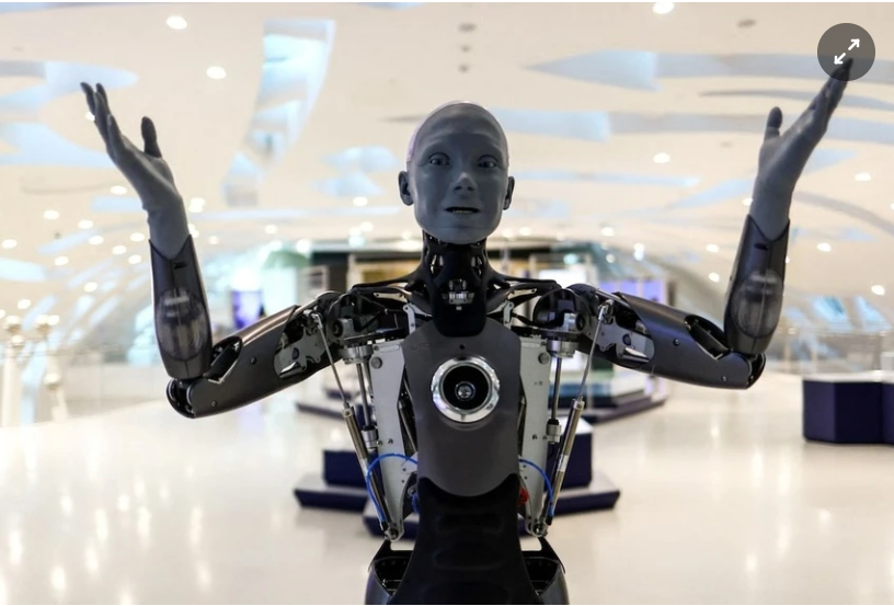 Robot chào đón du khách tại Bảo tàng Tương lai nằm ở Dubai, Các tiểu Vương quốc Ả rập Thống nhất. Ảnh: Reuters.