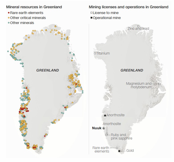 Bản đồ khoáng sản ở Greenland. Ảnh: CNN
