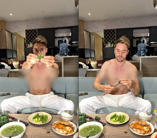 Theo như có điều khiến cộng đồng mạng thích thú hơn cả lại nằm ở cách anh khách Tây thưởng thức đặc sản Thanh Hoá, vị khách Tây liên tục dành lời khen cho hương vị đặc trưng của món ăn. Trong video, anh tỏ ra đặc biệt thích thú với món nem chua và không ngần ngại dành nhiều lời khen.