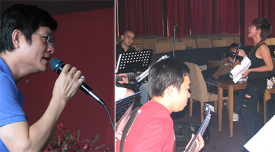 Mạnh Đ́nh, Uyên Linh trong buổi tập tại pḥng trà We - Ảnh: N.Vân