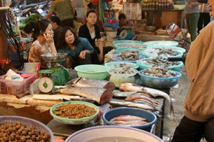 Một chợ bán hải sản ở Hà Nội hôm 26/04/2011.