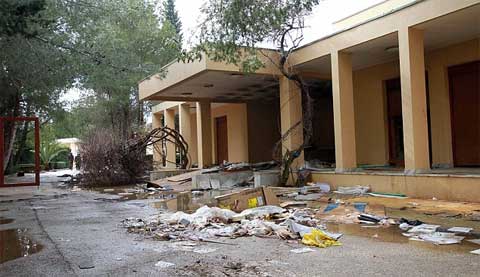 Dinh thự Gaddafi bị phá tan hoang