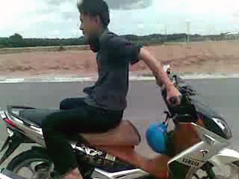 Giỡn mặt tử thần, ngồi ngược phóng xe máy