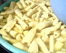 Theo bà này, trước khi bán hai ngày, những búp măng đã luộc sẽ được ngâm một thứ bột màu vàng mà những người trong nghề gọi là bột măng. “Cho phẩm vào khi măng mới luộc, nước còn nóng thì màu mới thấm từ ngoài vào trong. Chứ không măng bên ngoài màu vàng khè, bên trong nhợt nhạt người ăn sẽ phát hiện măng bị nhuộm ngay” - bà tiết lộ.