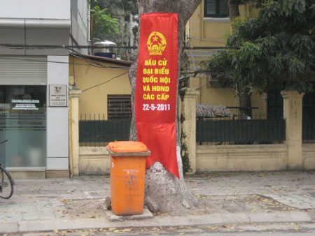 Hà Nội: Pano, áp phích treo kiểu “oái oăm”