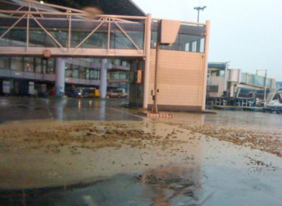Phi trường Nội Bài đầy nước cống, phân người