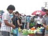 Rảo một vòng quanh chợ, dễ nhận thấy thức ăn nơi đây hầu như không còn tươi mới. Cầm hai quả mướp ngọt, một nữ công nhân cố kỳ kèo người bán giảm bớt 1.500 đồng, còn 7.000 đồng. Trả tiền, chị không quên xin thêm cây hành và 1 quả ớt. Tại hàng cá, chị Nguyễn Thị Hồng (công nhân Công ty Freetrend) vừa mua một con cá điêu hồng giá 20.000 đồng, chừng 400gr cho bữa ăn 3 người cùng phòng. “Đầu cá nấu canh, phần còn lại kho ăn dần, đảm bảo ăn có chất”, Hồng “phân chia” con cá. Sau một lúc tần ngần ở hàng thịt, Dương Thanh Tuyền (công nhân Công ty Boim) quyết định mua miếng thịt nách đã thẫm màu lại nhiều mỡ giá 30.000 đồng. Biết chúng tôi theo xem cảnh công nhân đi chợ, chị Tuyền, cười buồn giải thích: “Hôm nay cuối tuần mà, mua chút thịt cải thiện 4 chị em, chủ yếu là kho mặn thôi”.
