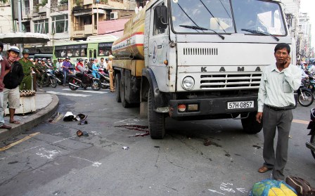 Va quẹt với xe bồn chở xăng, bố chết con gái trọng thương
