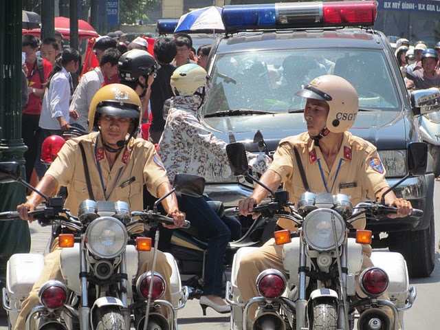 Hôm 3/7 vừa rồi, chứng kiến anh em CSGT đi bảo vệ đoàn vất vả quá, mình lân la lại hỏi và được biết mọi người thuộc quân số Đội Tuần tra - dẫn đoàn, Phòng CSGT Đường bộ - đường sắt, Công an TP. Hà Nội. Đề nghị lãnh đạo Phòng CSGT biểu dương anh em làm nhiệm vụ đê! (Hi! Hi!)...