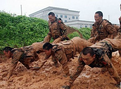 Cảnh huấn luyện thể lực của cảnh sát vũ trang Trung Quốc