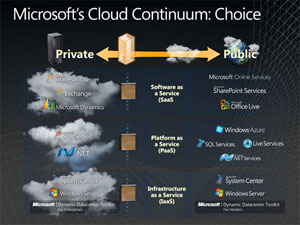 Có tới hơn 200 dịch vụ trực tuyến của công ty và các cổng web được lưu trữ trên cơ sở hạ tầng điện toán đám mây, bao gồm các dịch vụ quen thuộc của người tiêu dùng theo định hướng như Windows Live ™ Hotmail ® và Live Search, và các dịch vụ kinh doanh theo định hướng như Microsoft Dynamics ® CRM online và Microsoft Business Productivity online Standard Suite trong bộ Microsoft online Services.