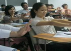Phòng học bố trí theo lối truyền thống, hai dãy bàn ghế kê hai bên, xung quanh treo một vài bảng. Ở cuối phòng, có một cát xét. Máy này dùng để bật nhạc khi giờ học bắt đầu với bài khởi động nhún nhảy. Thỉnh thoảng, có những “xen” các học viên đứng dậy vỗ vai và tự giới thiệu với nhau thì nhạc ở phía dưới cũng rộn rã chêm vào. Hai buổi học, mỗi buổi kéo dài từ 6h đến 9h tối, không nghỉ giải lao, chốc chốc lại có màn “hít vào, thở ra” với những động tác khởi động của yoga. Cứ tầm khoảng 1 tiếng, thầy giáo lại hô cả lớp đổi chỗ ngồi với ‘câu chú”: Các bạn hãy nhanh chóng đứng dậy tìm chỗ mới với bạn mới bên cạnh nào”.