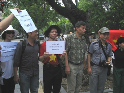Chiều hôm 25-7, khi tôi còn cách độ 10m để vào phòng làm việc với an ninh thì gặp một cô bạn, một cô bạn vốn rất hồn nhiên vui tính, cô hỏi: “Hôm qua anh có đi…”, bỗng cô thấy mình nhỡ miệng, vội ngừng lại, sợ hãi đảo mắt nhìn xung quanh một lượt rồi nói nhỏ: “Anh có đi… đi Bờ Hồ không?”. Tôi không nhịn được cười, bảo: “Thì em cứ nói to: “Anh có đi biểu tình không.