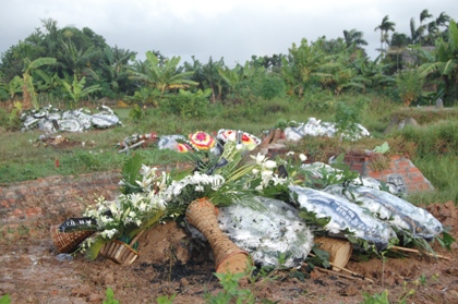 Thê lương những vòng hoa tang tóc phủ trắng nghĩa địa Tân Dân.
