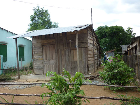 Xen lẫn với những ngôi nhà khang trang mới xây là lác đác một số ngôi nhà gỗ, tềnh toàng, đóng cửa im phăng phắc, cây cỏ mọc đầy như đã lâu thiếu vắng bàn tay chăm sóc của người lớn.
