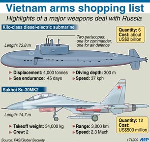 Mới đây, Bộ trưởng Quốc Phòng Việt Nam nói rằng trong vòng 6 năm nữa Việt Nam sẽ có một hạm đội tàu ngầm để bảo vệ, Việt Nam cũng sẽ mua thêm máy bay tên lửa để nâng cao khả năng tự vệ của mình.