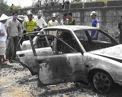 Ô tô 4 chỗ cháy thành than trên đường