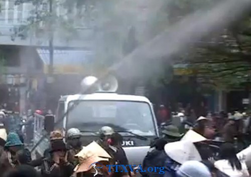 Video Công An đàn áp bằng cách phun nước hố phân vào người họp chợ Hạ Long
