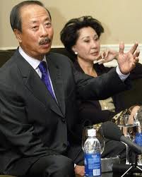 Cựu Phó Tổng Thống Nguyễn Cao Kỳ (trái) cùng vợ ông, bà Lê Kim, trả lời báo chí trong lần đầu ông về lại Việt Nam, tháng 1 năm 2004. Công điện ngoại giao Hoa Kỳ cho biết trước đó khi phía Mỹ đề nghị Việt Nam cấp visa cho Tướng Kỳ, ông Nguyễn Tấn Dũng đã giận dữ bác bỏ và gọi ông Kỳ và các viên chức Việt Nam Cộng Hòa là “tội đồ”. (Hình: Hoàng Ðình Nam/AFP/Getty Images)