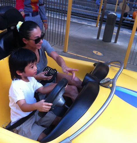 "Bám càng" 3 mẹ con Trương Bá Chi đi chơi công viên