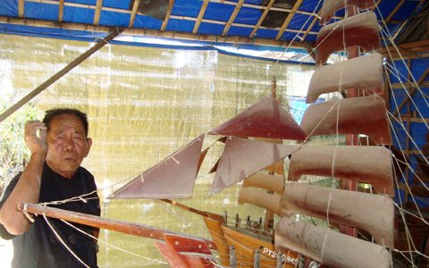 Không ai trong làng Đông Tác là không biết ông, người dám bỏ hàng chục triệu đồng ra tự mình mua gỗ, nguyên vật liệu về đóng đến 5 chiếc ghe mô hình lớn và 4 chiếc nhỏ được gắn vào trụ xoay vòng mỗi khi có gió chẳng khác lúc căng buồm vượt sóng biển Đông.