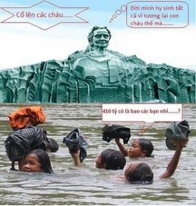 Các ông bà lớn chẳng từng làm những “THÀY DẠY” MÔN ĐẠO ĐỨC GIẢ hay PHẢN ĐẠO ĐỨC này là gì? Dạy rất xuất sắc nữa ấy chứ! “Văn giáo” đâu bằng “thân giáo”?Tòa án, công an…, là những THÀY DẠY MÔN BẤT LƯƠNG, BẤT NHÂN, giết người như giết ngóe! Đất nước tan hoang vì bọn quan tham đã vắt đất ra tiền, phá rừng kiếm của! Bản chất “bất lương” ấy hầu như đã thấm nhập trong lòng những con người “cố chui bằng được” vào cái guồng máy chính quyền CS này để thể hiện cái bản chất cướp bóc, hối lộ, nhũng lạm… Vì thế mới có cái tin “cắt gân” trên báo: trong khi giá cả tăng chóng mặt, dân đói, thì “Ngày 14/7/2011, chỉ tịch UBND tỉnh Quảng Nam ký quyết định xây tượng đài Mẹ VN anh hùng với kinh phí 430 tỷ đồng”! Kẻ chủ trương xây tượng đài này còn huênh hoang: “Không những nó lớn nhất VN, mà còn lớn nhất cả Đông Nam Á”!