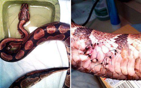 Người đàn ông say rượu cắn rách bụng trăn