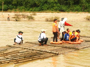 Ái ngại cảnh học sinh qua sông bằng bè tre tự tạo