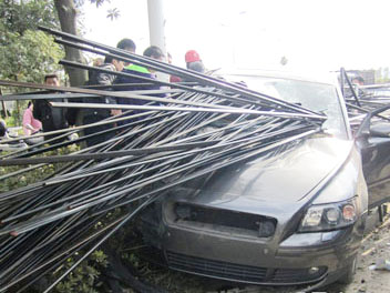 Hàng trăm thanh thép xuyên qua xe, tài xế thoát chết kỳ lạ