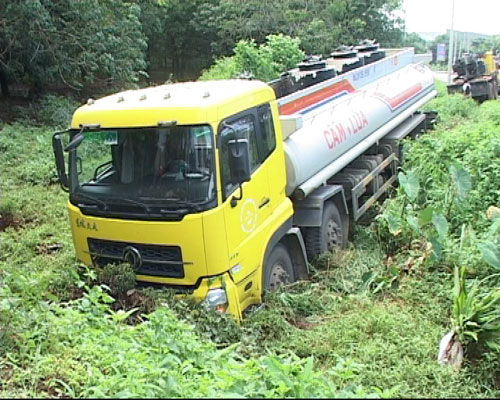 Xe bồn chở 18.000 lít xăng lao xuống suối