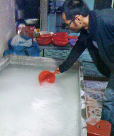 | Hồ nước được được pha trộn giữa gạo và hóa chất để chế biến thành bún bẩn |