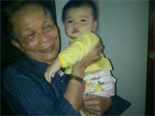 Nhìn cụ bế thằng con hôn lên má, chúng tôi cảm nhận được niềm hạnh phúc của cụ. Thật là hiếm khi đã 90 tuổi cụ vẫn còn cùng vợ sinh được thằng cu.