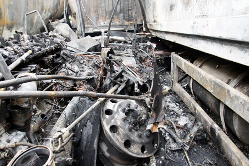 Xe đầu kéo bốc cháy trong tai nạn dính chùm
