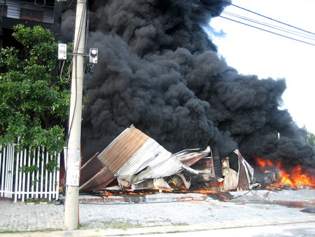 Cháy lớn tại cơ sở sản xuất nằm gần khu dân cư
