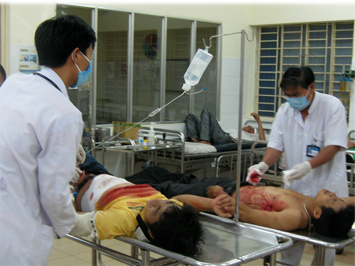Hầu như đêm nào khoa Cấp cứu của các BV Chợ Rẫy, Nhân dân 115, Nhân dân Gia Định, Chấn thương chỉnh h́nh… cũng tiếp nhận những ca nhập viện do đánh nhau, đâm chém. Những đối tượng này thuộc nhiều lứa tuổi (khoảng 16 đến 40 tuổi). Theo các BS, t́nh trạng đả thương về đêm nhiều hơn ban ngày.