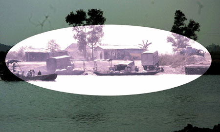 Ngày thứ hai. Giữa buổi trưa, chúng tôi từ thành phố quay lại khu vực Km15, đi qua con đường đất cách Trạm KSLH hơn 100m, rẽ đến mép sông. Bờ bên này (chỗ phóng viên đứng) chỉ còn một con đò sắt đang nhàn tản trên mặt nước. Nhưng bờ bên kia, có ít nhất 3 chiếc đò sắt chở đầy hàng dưới sông, 3 chiếc xe tải trên 2,5 tấn đang quay đuôi ra mép nước cho cánh "cửu vạn" bốc hàng lên. Một chiếc xe khác thì vừa rời bến. Tuy vậy, không khí ban ngày khá im ắng. Chúng tôi cân nhắc trở lại một lần nữa vào ban đêm.