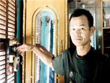 Chiếc bút thử điện đỏ lừ khi châm vào người ông.