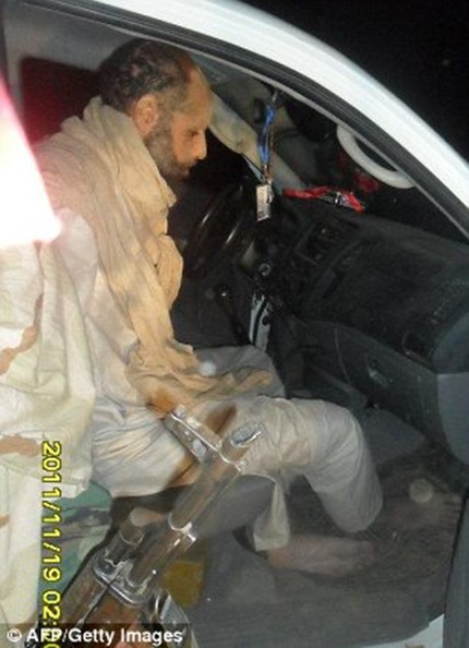 Người từng được chọn kế vị Gaddafi đã bị chặn lại ở gần thị trấn dầu mỏ Obari khi đang cùng 3 kẻ thân cận cố gắng tiếp cận một chiếc xe dẫn động 4 bánh hòng tìm cách bỏ chạy sang Niger. Khi các chiến binh thuộc NTC kiểm tra danh tính của những kẻ ngồi trong xe, Saif đã khai tên mình là “Abdelsalam” – có nghĩa là “kẻ đầy tớ của hoà bình”.