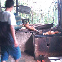 Khi bước vào khu vực “hóa kiếp” chó với diện tích gần 12 m2, chúng tôi muốn nôn ói vì mùi hôi bốc lên rất khó chịu. Sau khi cạo lông, chó được con ông T. đem lên lò thui cho vàng da rồi chuyển xuống sàn nước để mổ bụng làm thịt. Mỗi ngày, lò mổ này làm thịt hàng chục con chó đem bán ở chợ đầu đường 91B và cung cấp cho những quán cầy tơ. “Tôi mua chó từ nhiều nơi như Phụng Hiệp (Hậu Giang), Kinh B (Vĩnh Thạnh, TP Cần Thơ) hoặc của bọn trộm với giá 40.000 đồng/kg” - ông Tiến cho biết.